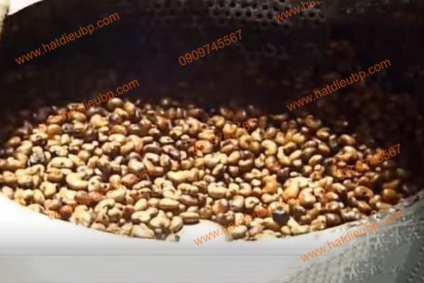 Bước cuối cùng là lấy nhân hạt điều (Nhân sống) còn vỏ lụa đem rang với muối, rang với tỷ lệ 99% hạt điều và 1% là muối. Hạt điều nhân sống này sẽ được chúng tôi cho vào nồi rang chuyên dụng chứa được 100kg cho mỗi lần rang. Nhiên liệu rang hạt điều là than củi, để lửa nhỏ liu riu kết hợp với rang đều sẽ được chất lượng sản phẩm hạt điều giòn, thơm ngon, cao cấp.