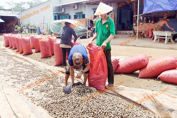 Hạt điều tươi được chúng tôi thu mua về sẽ được phơi khô và đóng bao (Thường phơi khô khoảng từ 3 đến 4 nắng)